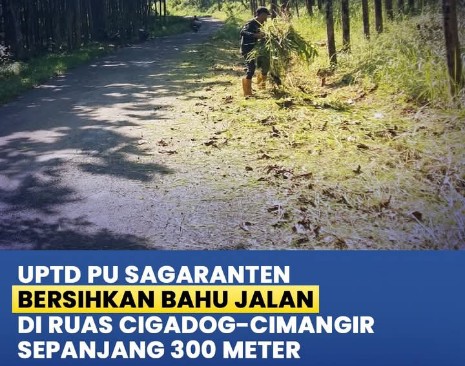 UPTD PU sagaranten kembali melaksanakan kegiatan rutinnya dalam menjaga kebersihan dan kelancaran infrastruktur jalan. Hari ini TIM UPTD PU sagaranten melakukan pembersihan bahu jalan dari rumput dan ilalang di ruas cigadog-cimangir, desa sagaranten kecamatan sagaranten dengan panjang penanganan mencapai 300 meter.