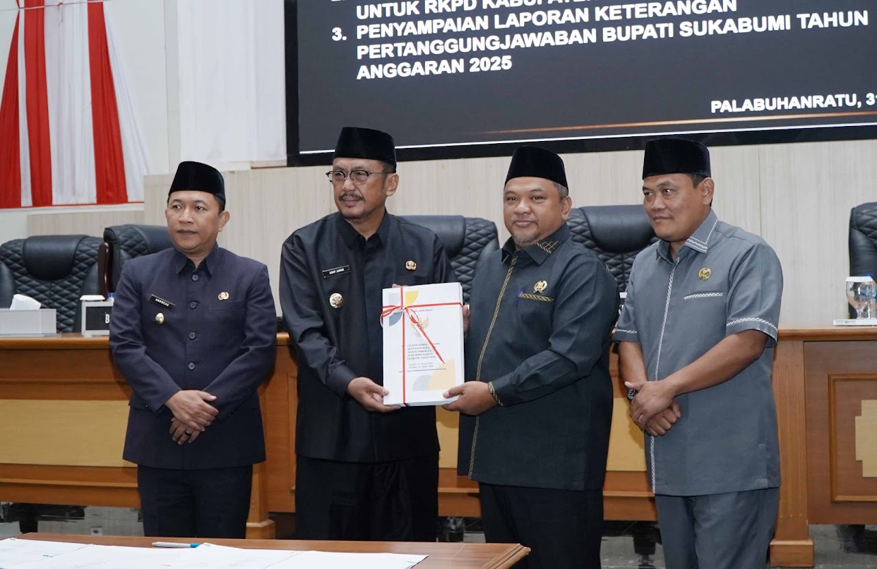 Rapat tersebut dipimpin oleh Ketua DPRD Kabupaten Sukabumi, Budi Azhar Mutawali, didampingi Wakil Ketua II H. Usep. Kegiatan ini turut dihadiri oleh Bupati Sukabumi Asep Japar, Wakil Bupati Andreas, anggota DPRD, unsur Forkopimda, serta jajaran perangkat daerah.