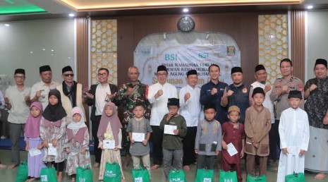 Potret Sukabumi,- Sekretaris Daerah Kabupaten Sukabumi, H Ade Suryaman menyalurkan santunan bagi anak yatim dan warga terdampak bencana dalam rangkaian kegiatan Syiar Ramadhan 1446 Hijriah yang berlangsung di Masjid Agung Palabuhanratu, pada Selasa (25/3/2025).