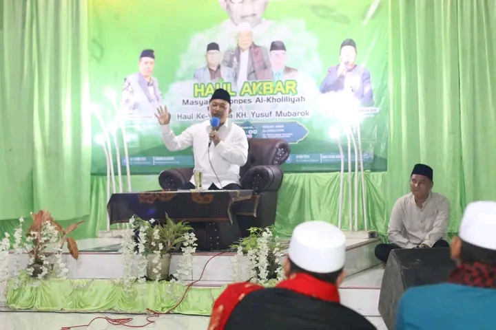 Wakil Bupati Sukabumi H. Andreas menghadiri Haul Akbar ke-5 KH. M. Yusuf Mubarok di Yayasan Al-Kholiliyah Sukatani, sambil menyoroti peran penting pesantren dalam sejarah dan harmoni bangsa.