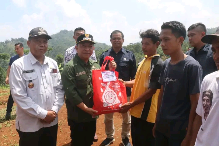 Potret Sukabumi — Wakil Bupati Sukabumi H Andreas melakukan peletakan batu pertama pembangunan hunian sementara di Kampung Cicau, Desa Langkapjaya, Kecamatan Lengkong. Kegiatan ini berlangsung Selasa 23 Desember 2025 dan menjadi awal pembangunan 28 unit huntara bagi warga terdampak banjir dan longsor.